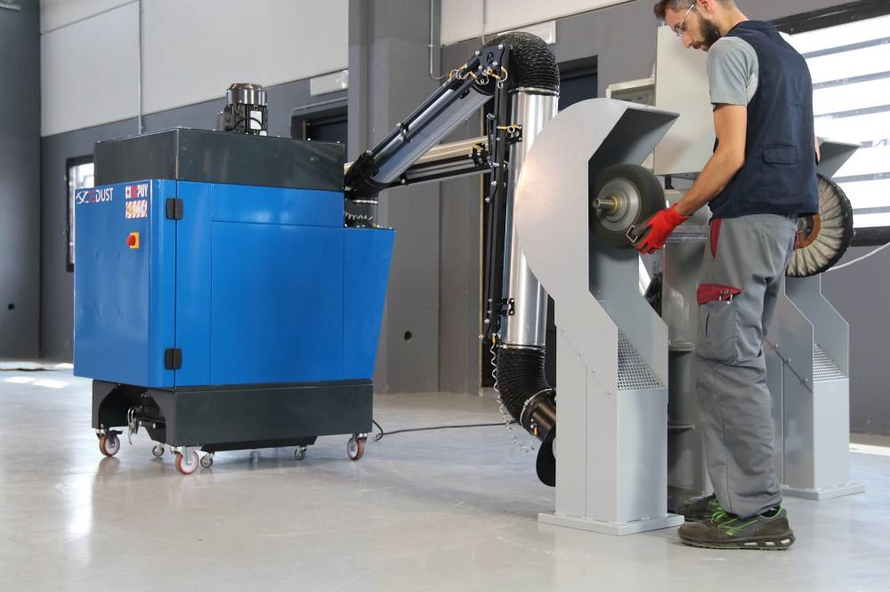 Tørrbearbeiding av metaller : under prosessen med sliping av metalloverflater slippes mikropartikler ut i miljøet, usynlige for det blotte øye, men ekstremt farlige ved innånding. Dessuten kan støvet avsettes på tilstøtende maskineri, forurense kvaliteten på arbeidet eller kompromittere selve maskineriet. Omvendt, i sveiseprosesser kommer hovedfaren fra røyk som inneholder oksider, som i det lange løp forårsaker kroniske luftveisproblemer. I begge tilfeller bidrar et lokalisert sugesystem til å begrense risikoen.