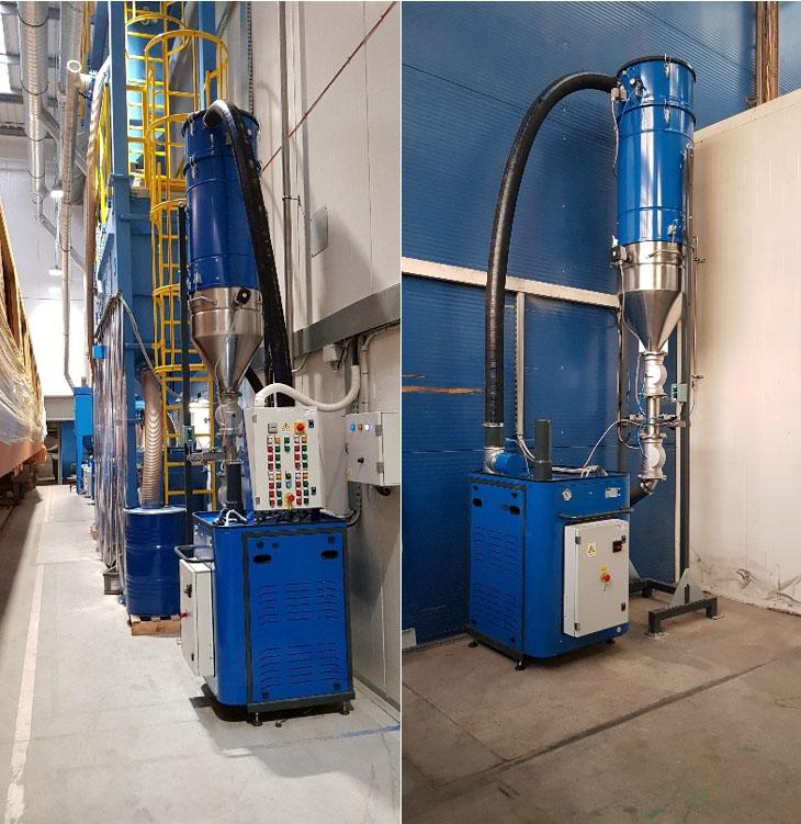 DU-PUY , som alltid har vært oppmerksom på sektorens behov, har utviklet en rekke kraftige industrielle støvsugere, utstyrt med sidekanalturbin eller høyytelseslobepumper , spesialisert på fjerning og gjenvinning av slipemidler fra produkter utsatt for sandblåsing.