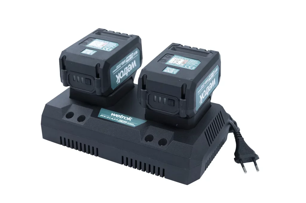 Batteriene kan tas ut på sekunder og settes inn i en annen enhet. Dette gir deg maksimal driftsberedskap med minimal innsats. Ladingen er også effektiv: den kraftige laderen har en hurtigladefunksjon slik at batteriene dine raskt er klare til bruk igjen.