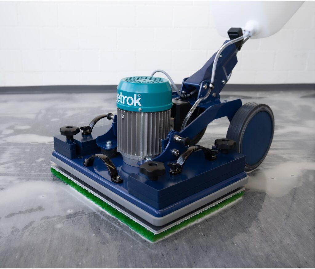 Wetrok Durodisc X er en kraftig og effektiv slipe-/skuremaskin med oscillerende pad. Den firkantede formen gjør det enkelt å komme til i hjørner. perfekt for sliping av bla. tregulv og til grundig rengjøring av skitne gulv.