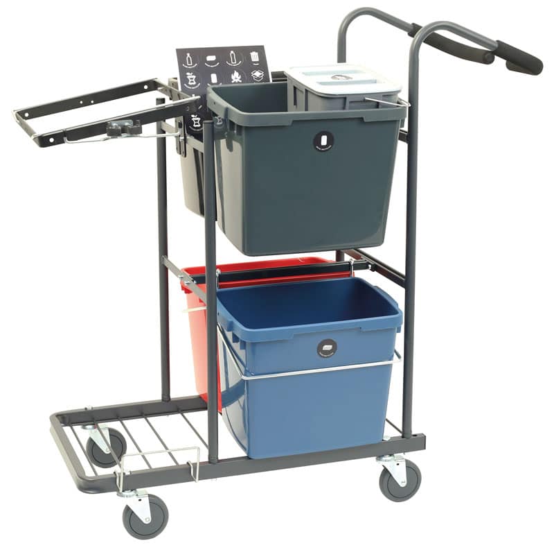 Activa kildesorteringsvogn er en fleksibel kildesorteringsvogn med seks fraksjoner i varierende størrelse. Holder for 125L sekk, 4 x 25L fargekodede brett og 12L beholder med lokk egnet for matavfall. Kart med markeringer i form av informative piktogrammer medfølger. Vognen kan enkelt utvides med ytterligere fraksjoner.