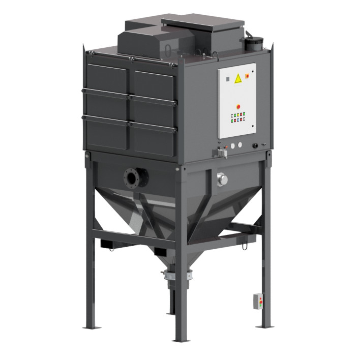 Den nedre beholderen har en kapasitet på 1000 liter og kan tømmes i bunnen via en manuelt styrt spjeldventil. Pneumatiske aktuatorer og andre typer utladere er tilgjengelige.