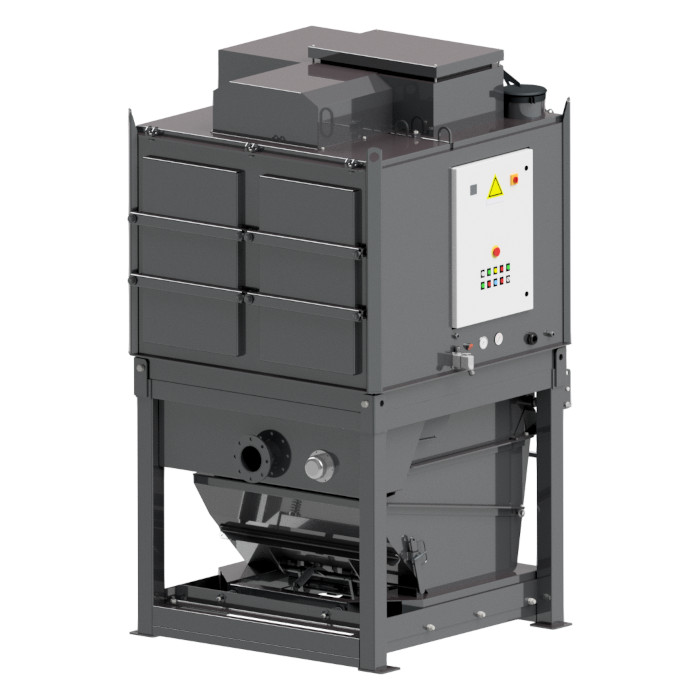 Den nedre beholderen har en kapasitet på 1000 liter og kan tømmes i bunnen via en manuelt styrt spjeldventil. Pneumatiske aktuatorer og andre typer utladere er tilgjengelige.
