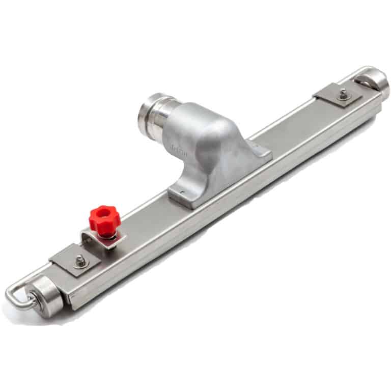 Munnstykke med hjul og gumminal. Rustfritt stål. 430 mm bredde. Diamater 40 mm.