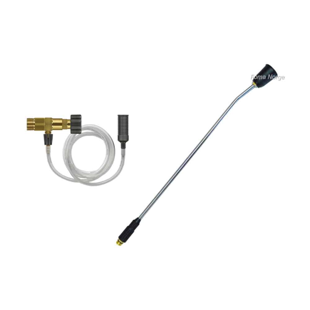 Injektorkit for påføre såpe med høytrykksvaskeren. Kit består av injektor og kjemilanse.