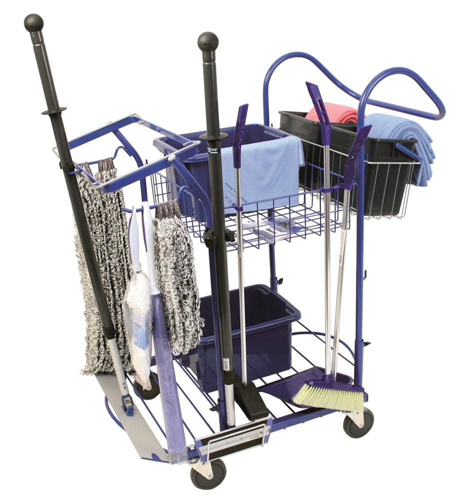 MAX Rengjøringsvogn med utstyr er den komplette systemvognen som rommer 125 liters sekker, 2 stativer og håndtak og 2 solide kroker.S