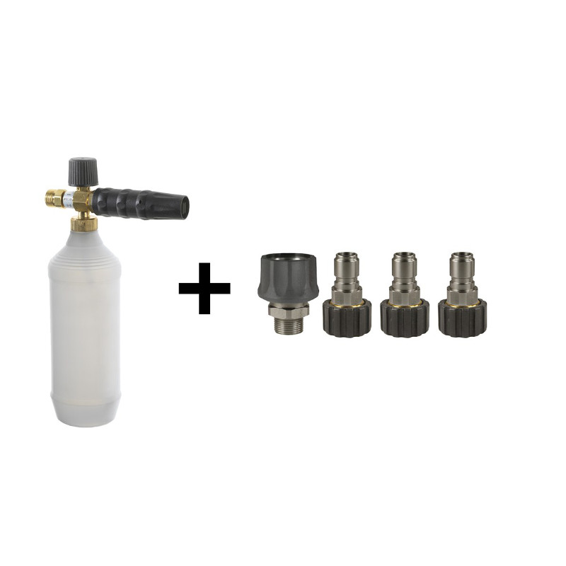 Nordic kit består av 1 stk. skumpålegger med 1 liter beholder og et hurtigkoblingssett bestående av 1 x hunn M22 og 3 x hann M22 koblinger. Passer til alle IPC Foma sine høytrykksvaskere og gjør det enkelt å skifte mellom vaskelanse, turbodyse og skumpålegger. Med skumpåleggeren kan bredden på skumstrålen justeres og det kan også justeres mellom vått og tørt skum samt mengde innblanding av vaskemiddel. Passer perfekt til pålegging av alkaliske vaskemidler, slik som Gullshampo, Bilshampo, Høytrykksvask, etc.