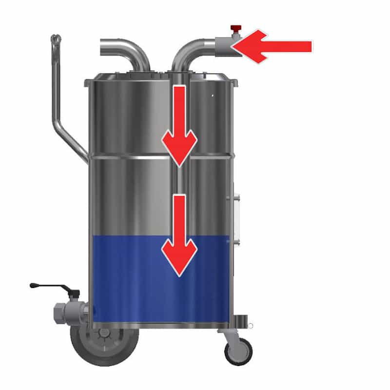 1000 liter Cyclon forseparator med frontutkast og gaffeltruckinntak.