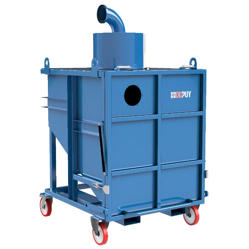 SEP.DPY-0013 er en 1000 liter Cyclon forseparator med frontutkast og gaffeltruckinntak. Sugeinntak Ø120mm.
