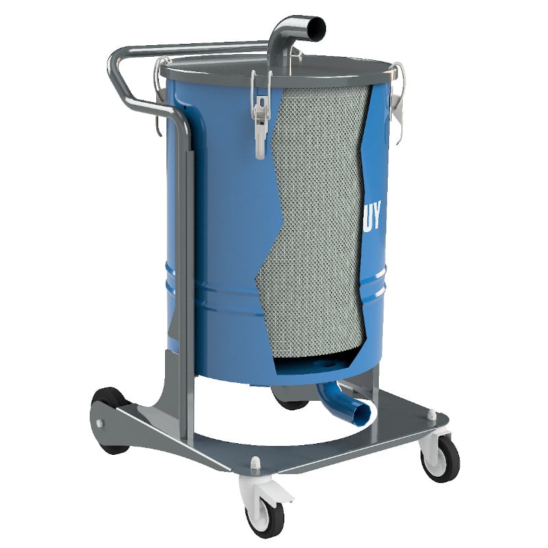 SEP.DPY-0024 er en 100 liter forutskiller for metallspon med siktet gitter – sugeinntak inn/ut Ø50mm.